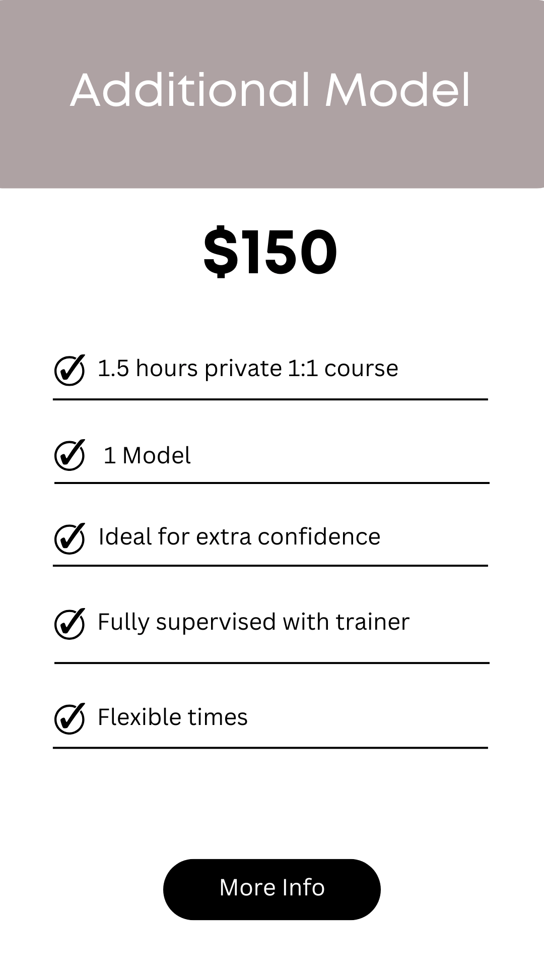 Yes, if you’d like to come back for a third model session, this can be added for $150. Perfect for those wanting extra confidence before launching services.