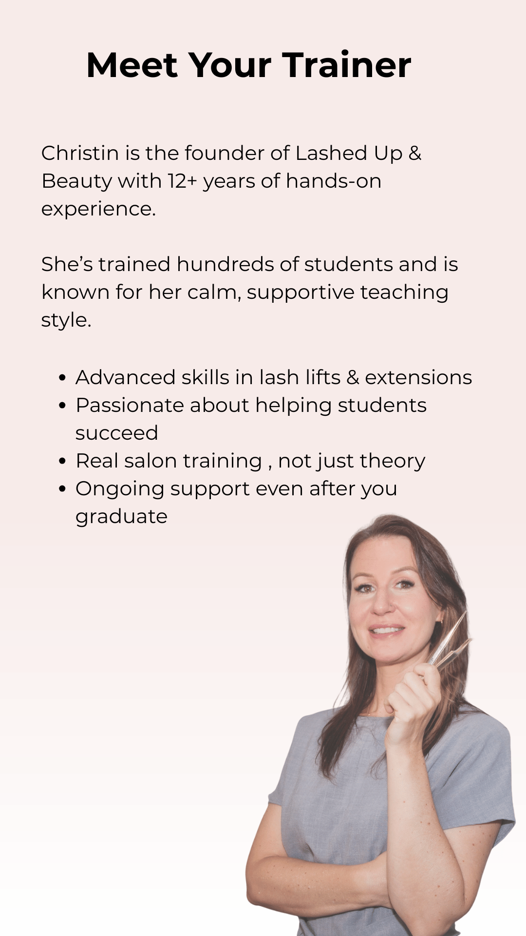 All training is done in-salon at Lashed Up & Beauty, located In Labrador, Gold Coast. You’ll be learning in a real salon setting, not a classroom.